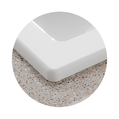 Met klassiek geprofileerde buitenrand voor een snelle en comfortabele opliggende inbouw in alle types van werkbladen.