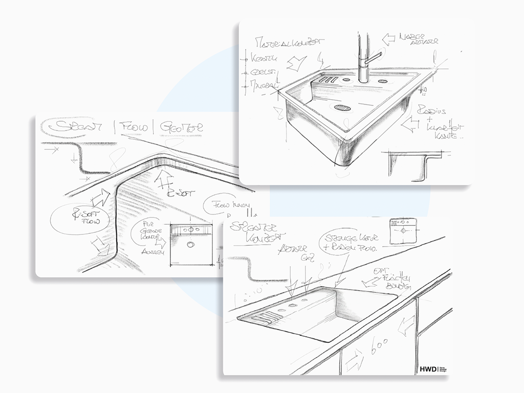 SILQUA is nog een ander product dat Naber met Hans Winkler Design, Grafenau succesvol realiseert. De impressies vanuit het ontwerpatelier geven een indruk van het ontstaan. Van meet af aan is het basisaccent waar te nemen: de taal van het water, van wat vloeiend is, van de wissel tussen een zachte vorm van een golf en een geaccentueerde contour.