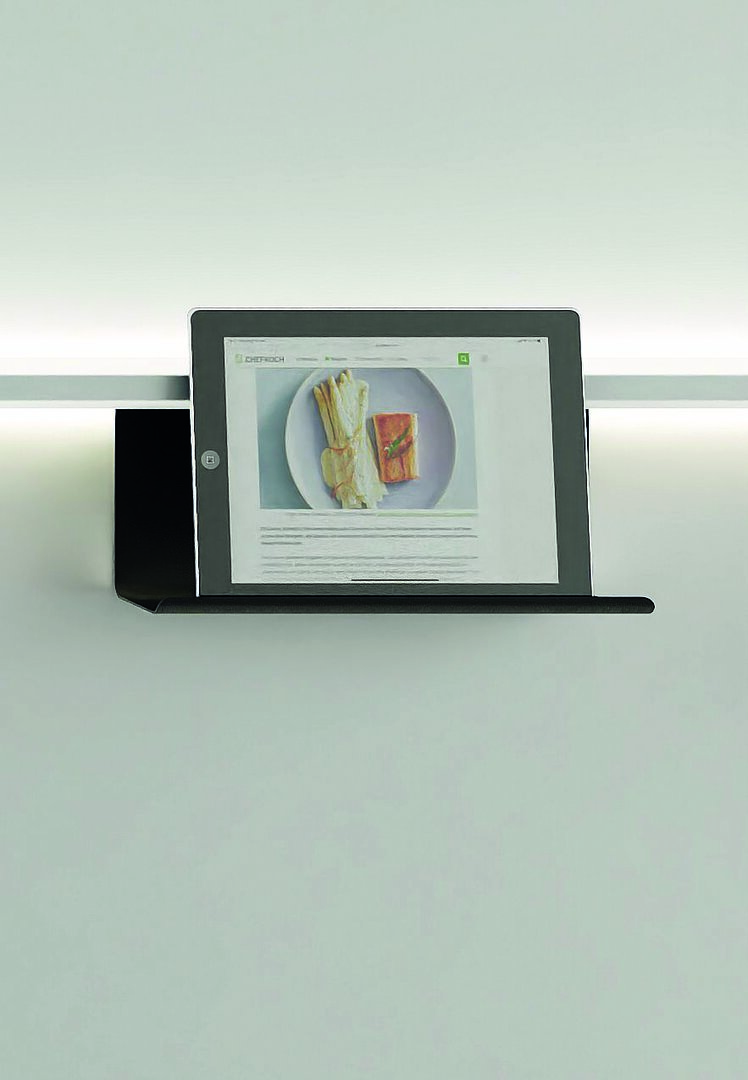 Für ein Tablet, Handy, Kochbuch, etc. Mit Aufkantung für sicheren Stand.